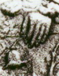 The hand may be the most distinctly human appendage. We spend our lives with our hands right in front of us, reaching, touching, fingering, scratching, and doing much of the work our lives require. Early man blew paint around his hand, leaving a clear mark that he'd visited certain of the caves of Southern France.Cemetery hands tend to be shown doing one of four things: clasping, praying, pointing, and blessing. All these signs show that the deceased's relationships involve human beings. (The hand to the right is the hand of God reaching down from a cloud to lay a flower on a grave.) The hand says "Here I lived". From the fact of this life, the hand directs us to spiritual matters (e.g. the presence of God) or to the endurance of human feelings (clasping hands often symbolize a marriage or other close bond). Photo: Burying Ground, Somesville, Maine Copyright 2000 by Joel GAzis-SAx |